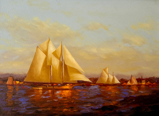 Vernon Broe In Full Glory Sailboat Yacht Race in Seascape Oil Painting in Gold Frame