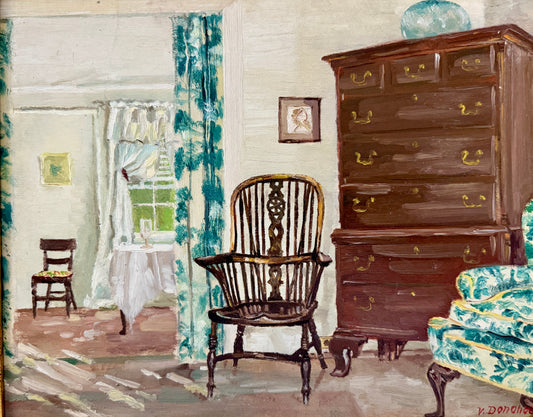 Victoria Donohue Antique Highboy Traditional Interior Scene Oil Painting in Gold Frame