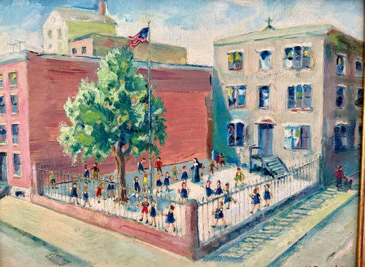 Victoria Donohue Recess Nuns in the School Yard Oil Painting in Gold Frame