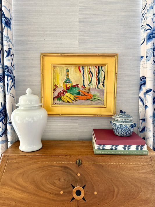 Victoria Donohue Chianti and Carrots Still Life Oil Painting in Gold Frame