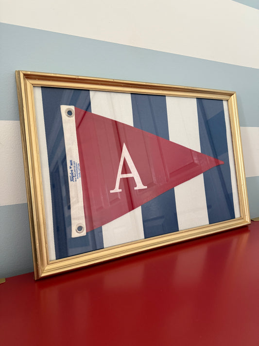 Vintage "A" Burgee Nautical Flag on Striped Canvas in Gold Frame