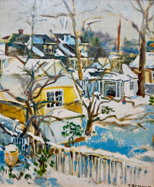Victoria Donohue Pennsylvania Neighborhood Winter Landscape Oil Painting in Gold Frame
