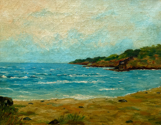 Vibrant Antique Seascape Oil Painting in Wavy Gold Frame