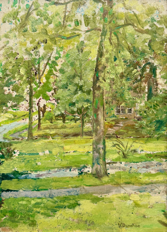 Victoria Donohue Narbrook Park Pennsylvania Landscape and Stone House Oil Painting in Gold Frame
