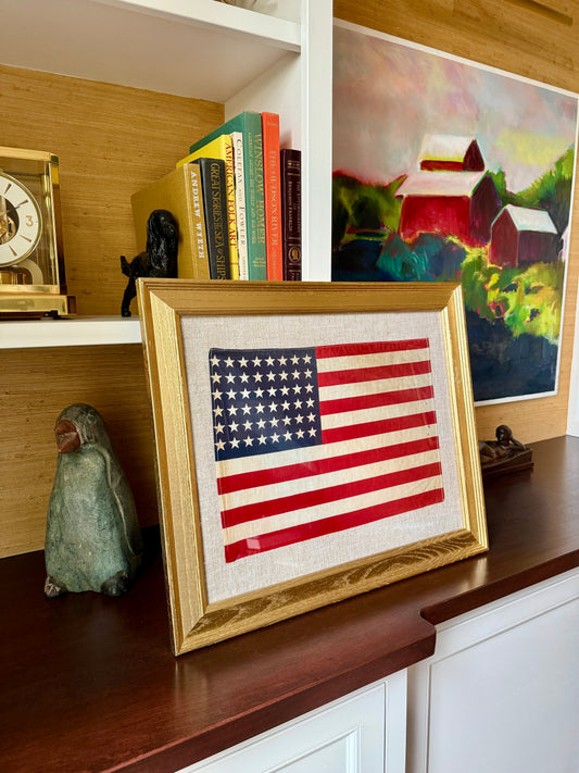 Vintage 48 Star American Flag on Ivory in 19th c. Wood and Gilded Frame
