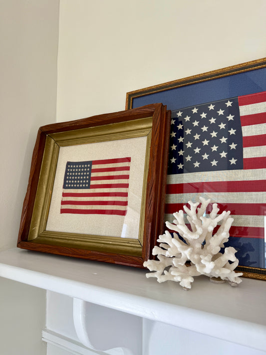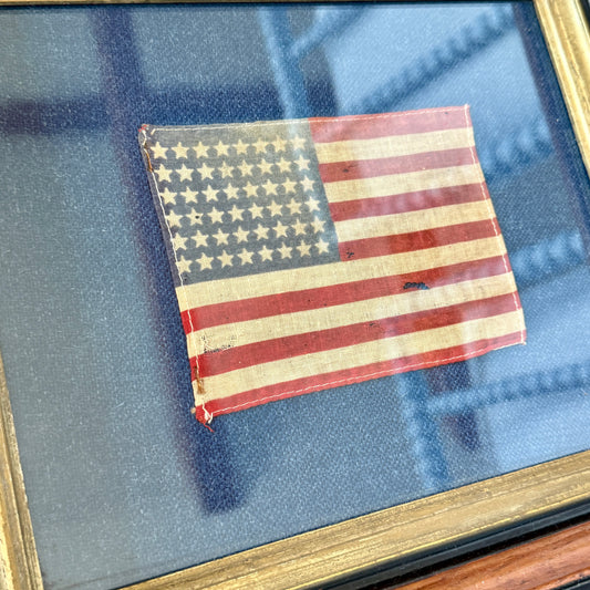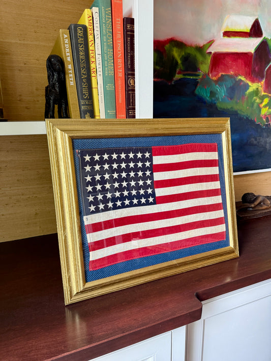 Vintage 48 Star American Flag on Navy in 19th c. Wood and Gilded Frame