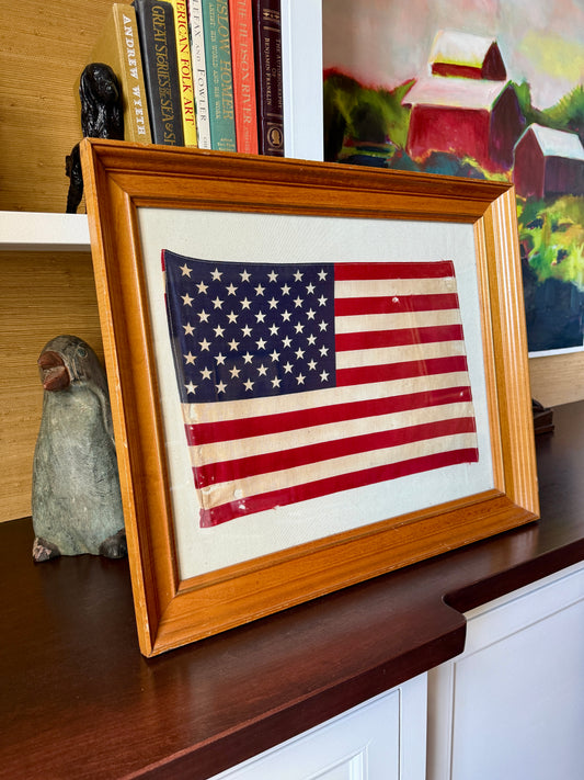 Vintage 50 Star American Flag on Duck Cloth in Maple Wood Frame