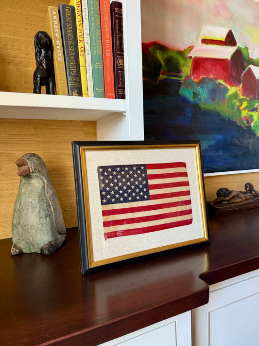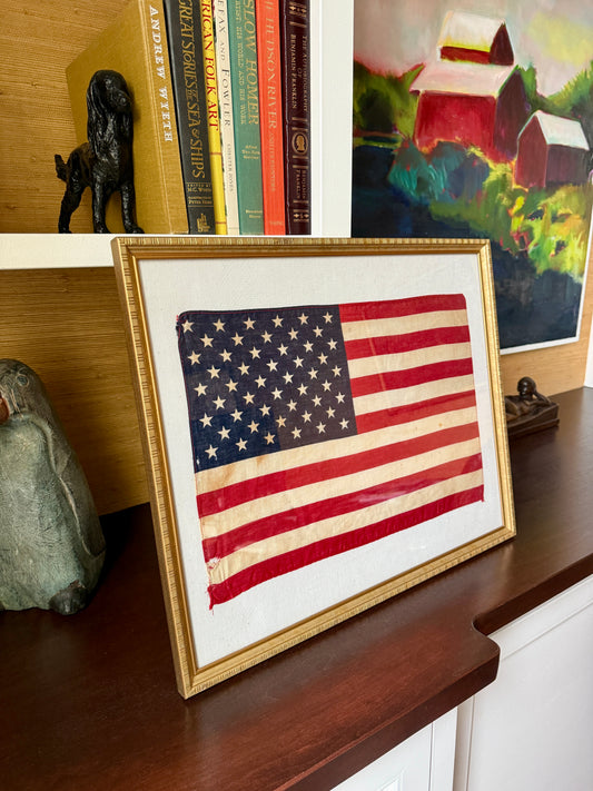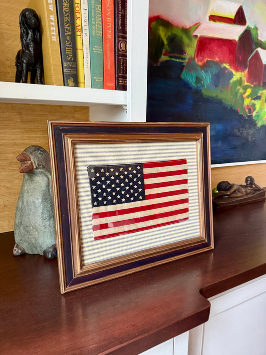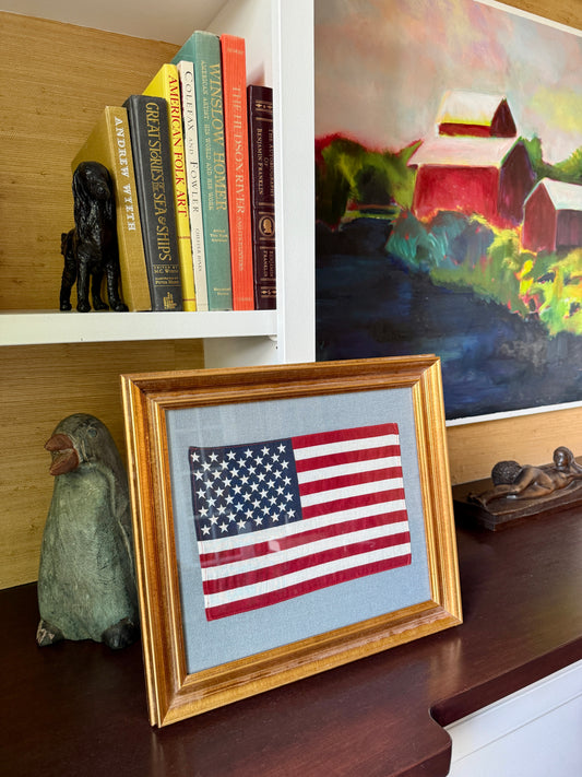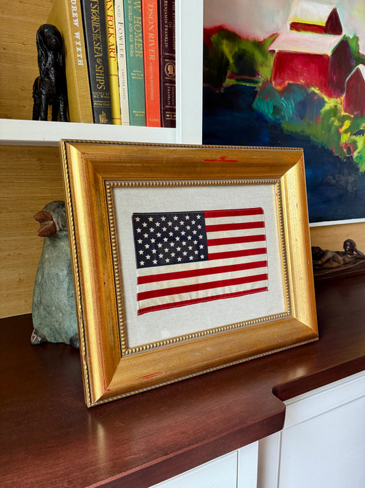 Vintage 50 Star American Flag on Ivory Duck Cloth in Gold Frame