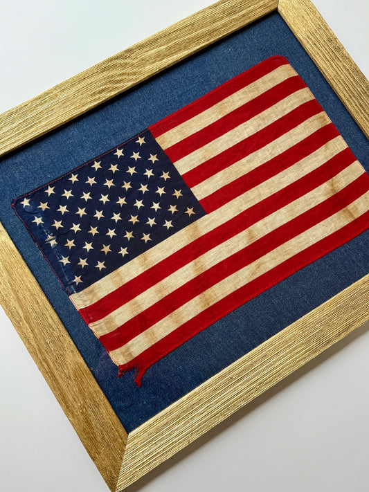 Vintage 50 Star American Flag on Duck Cloth in Antique Wood Frame