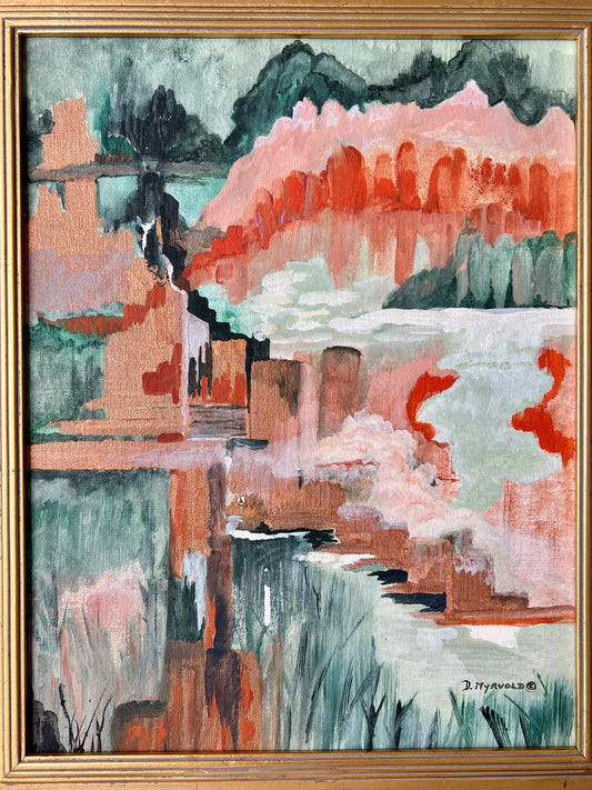 Vintage Abstract Expressionist Landscape in Gold Frame