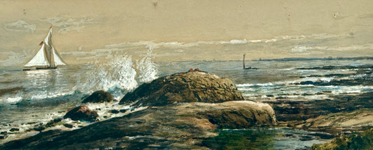 19th Century Coastal Landscape Watercolor Painting by Jean Lucas (French, b. 1823)