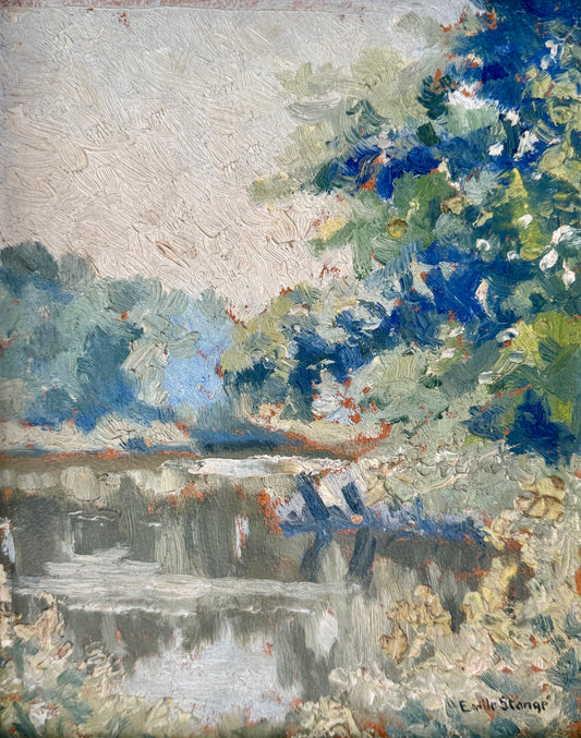 19th Century Emile Stange Impressionist Landscape Oil Painting in Gold Frame