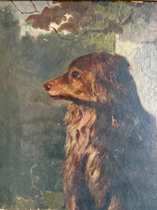 19th Century Dog Portrait Oil Painting in Original Carved Wood Frame