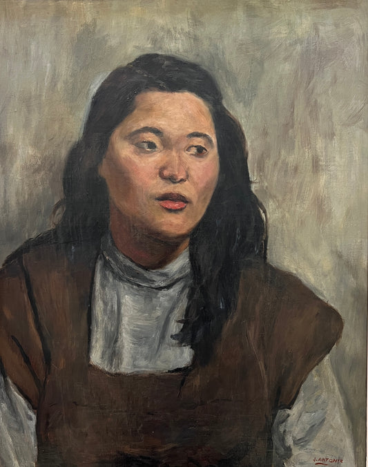 Vintage John Antonik Oil Painting Portrait of Young Woman in Ornate Gilded Frame