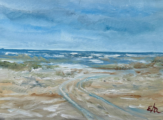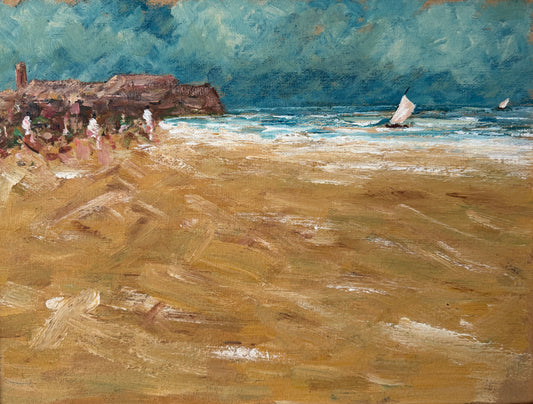 Vintage Impressionist Beach Seascape Oil Painting in Gold Frame
