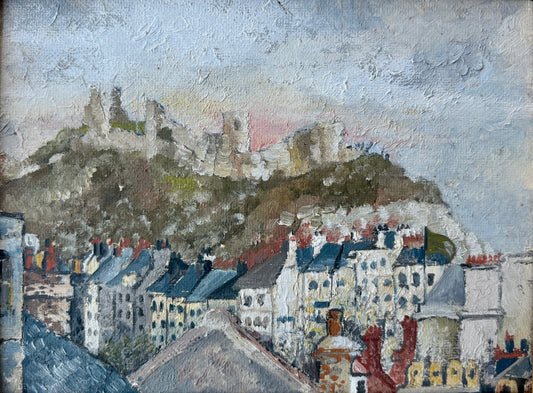 Vintage Impressionistic European Cityscape Oil Painting in Gold Frame