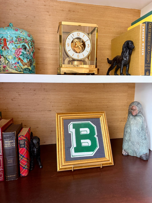 Vintage Large Green Varsity Letter "B" on Navy Blue Fabric in Gold Frame