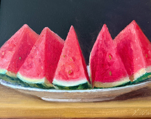 Watermelon Slices Realist Still Life Oil Painting in Gold Frame