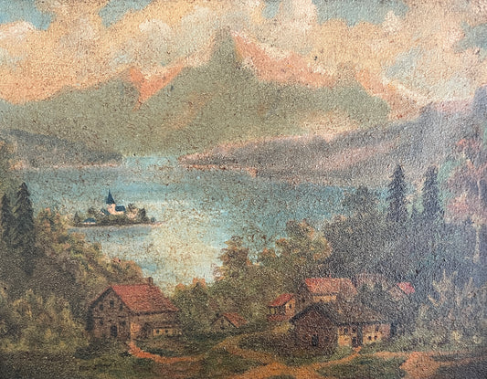 19th Century European Landscape Oil Painting in Eastlake Gold Wood Frame