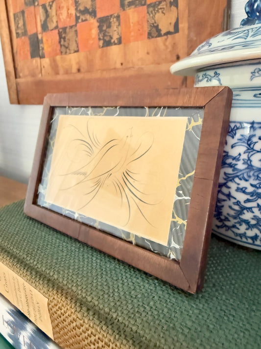 19th Century Pennsylvania Calligraphy Bird Drawing in Grained Wood Frame