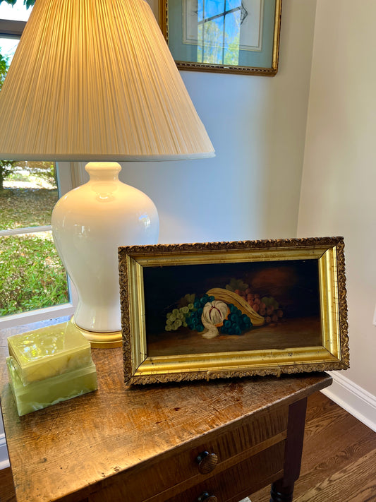 19th Century Fruit Still Life Oil Painting in Lemon Gold Carved Frame