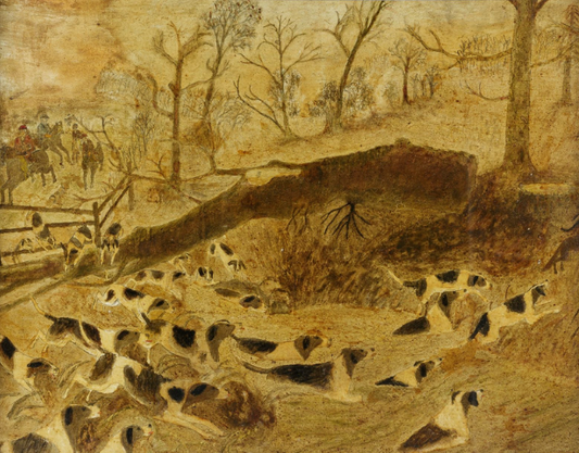 19th Century Fox and Hounds Hunt Scene Painting in Original Frame