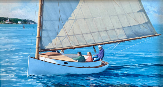 Anthony R. Thompson Cat Boat Off West Chop Martha's Vineyard Oil Painting in Gold Frame