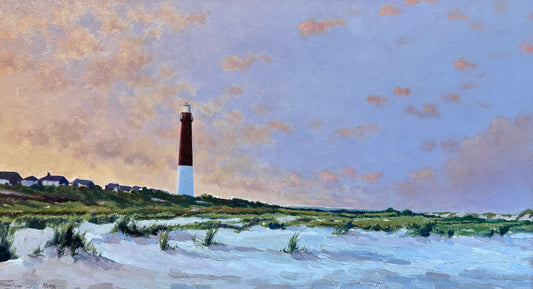 Anthony R. Thompson Barnegat from the Dunes at Sunset Long Beach Island NJ Coastal Lighthouse Landscape Oil Painting in Gold Frame
