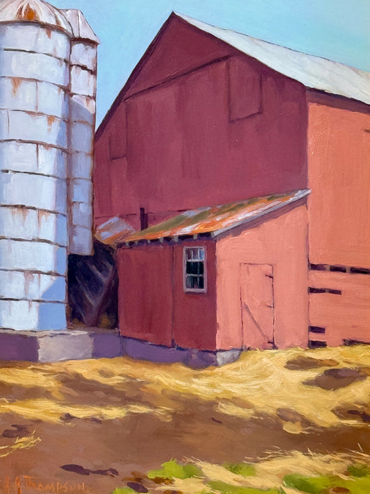 Anthony R. Thompson Old Red Barn Farm Landscape Oil Painting in Gold Frame
