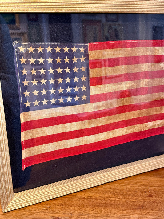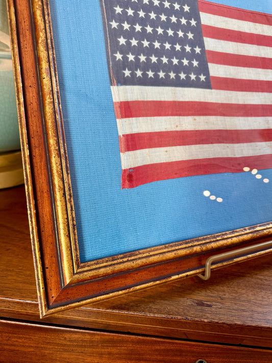 Old 48 Star American Parade Flag on Linen in 19th Century Eastlake Victorian Frame