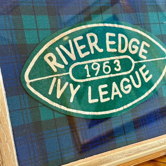 1963 River Edge Ivy Leage Football Varsity Patch on Blackwatch Plaid in Gold Frame