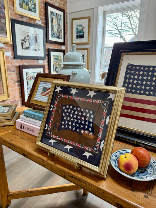 Old 48 Star American Parade Flag on Linen in 19th Century East Lake Victorian Frame
