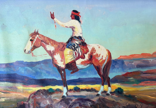 Vern Parker Portrait of Native American on Horseback Oil Painting in Natural Wood Frame