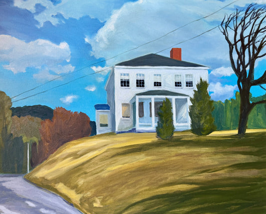 Eugene Horne March Wind White House Oil Painting in Gold Frame