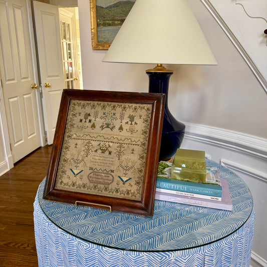 Late 18th - Early 19th Century Silk on Linen English Sampler in Wood Frame