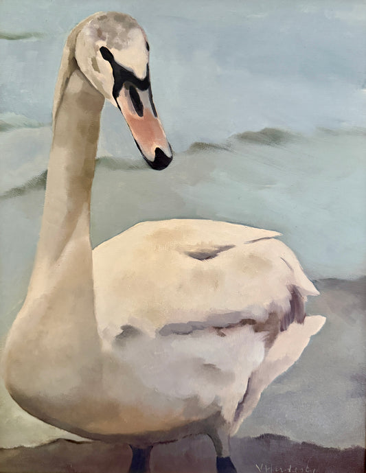 Lake Reverie Swan Portrait Oil Painting in Gold Frame