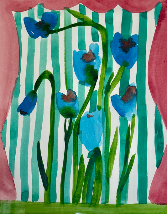 Brigette Hoffman Flower Show #3 Painting in White Frame