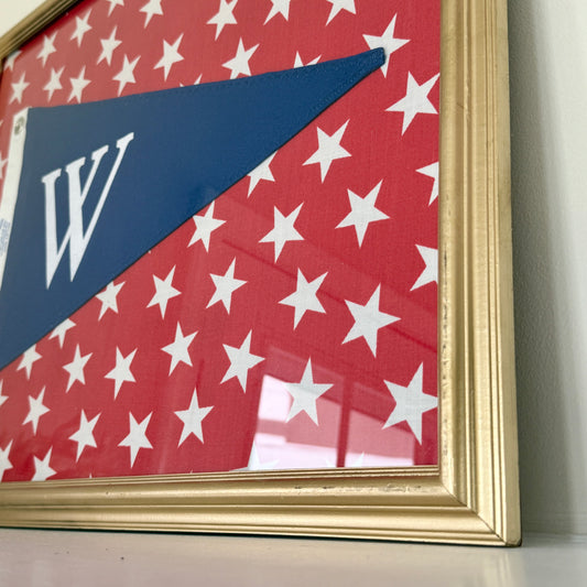 Vintage "W" Initial Canvas Burgee Nautical Flag on Red White Stars in Gold Frame