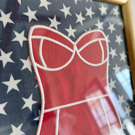 Red Linen Bathing on Blue and White Stars in Vintage Gold Frame