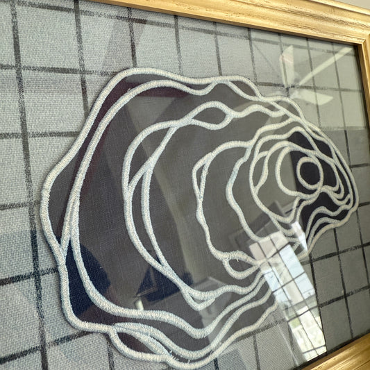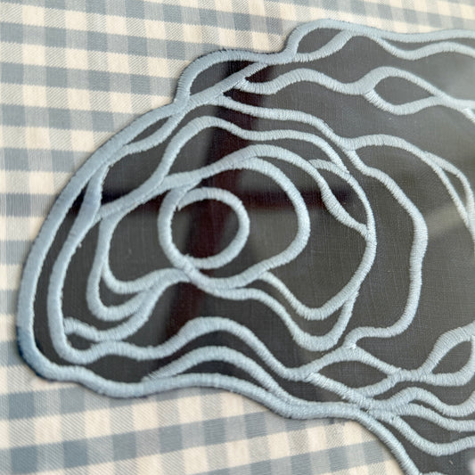 Navy Blue Linen Oyster on Light Blue and White Gingham in Vintage Gold Frame