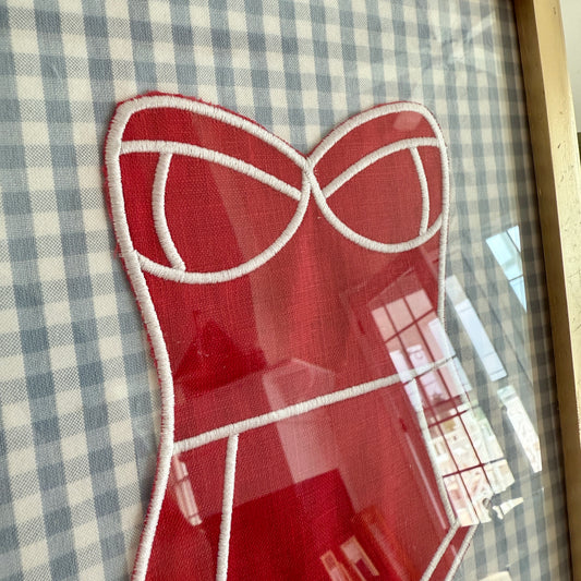 Red Linen Bathing on Blue and White Gingham in Vintage Gold Frame