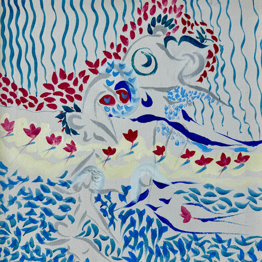 Eva Bouzard-Hui Abstract Figural Female Floral Composition Oil Painting in Gold Frame