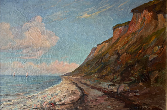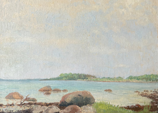 Emil Gottfrid Tage Hakansson 1938 Cove Seascape Oil Painting in Dark Gilded Frame