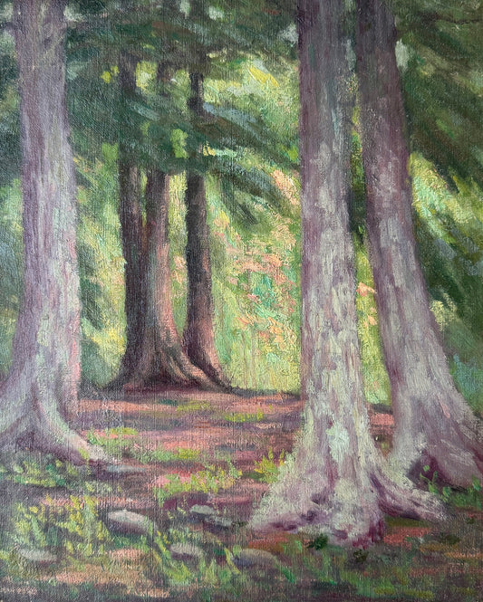 Early 20th Century American California Impressionist Wooded Landscape Oil Painting in Lemon Gilt Frame