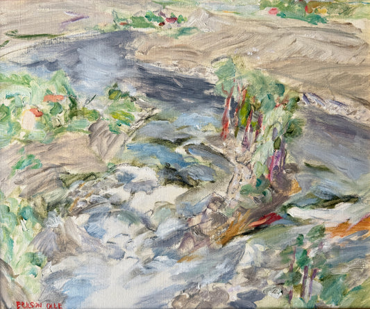 Olle Ericson Expressionist Colorful Waterside Landscape Oil Painting in Gold Beaded Frame