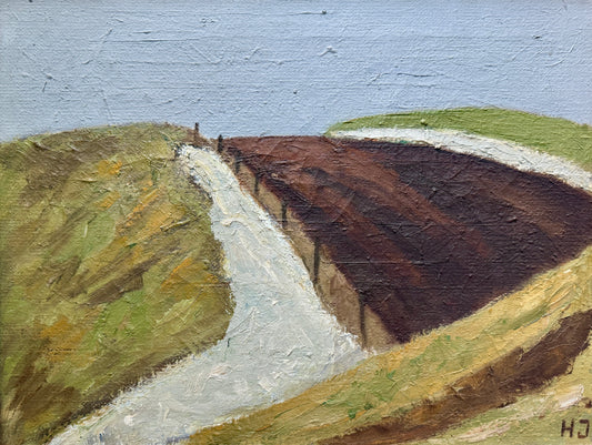 Edvard Sarvig 1930 Modernist Rolling Country Landscape Oil Painting in Gold Frame