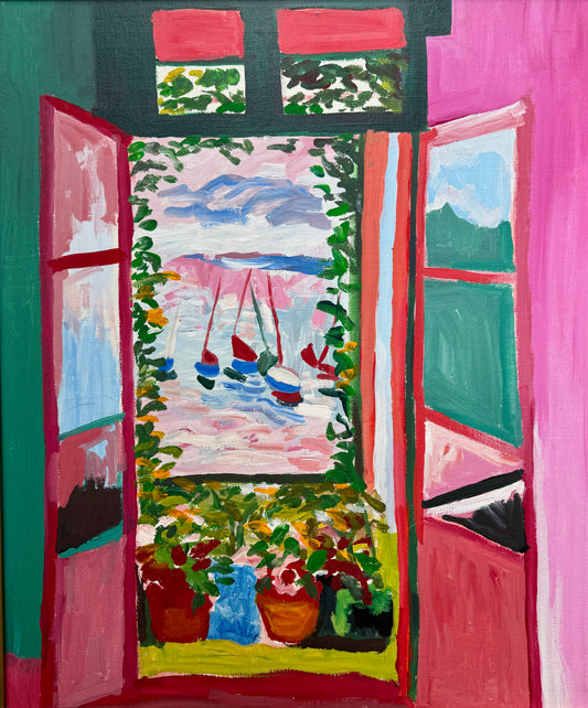 Open Window Collioure France Painting After Henri Matisse in Gold Frame