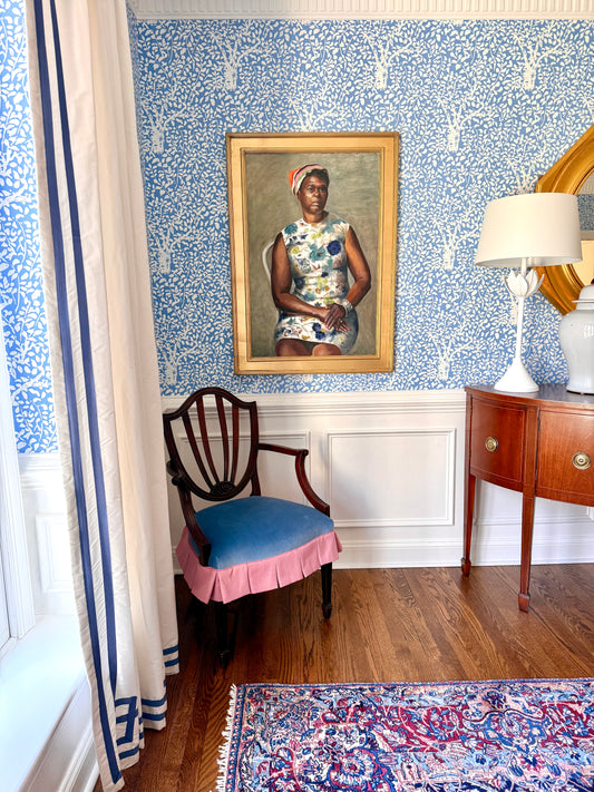 Mid Century Vintage African American Lady Portrait Oil Painting Attr. to George Dangman in Gold Frame