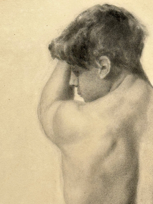 Exceptional Young Male Nude Pencil Drawing in Silver Frame