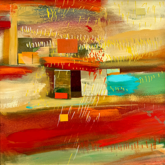 Lori-Ann Bellissimo Montauk in Red Sunset Abstract Landscape Mixed Media in Gold Frame